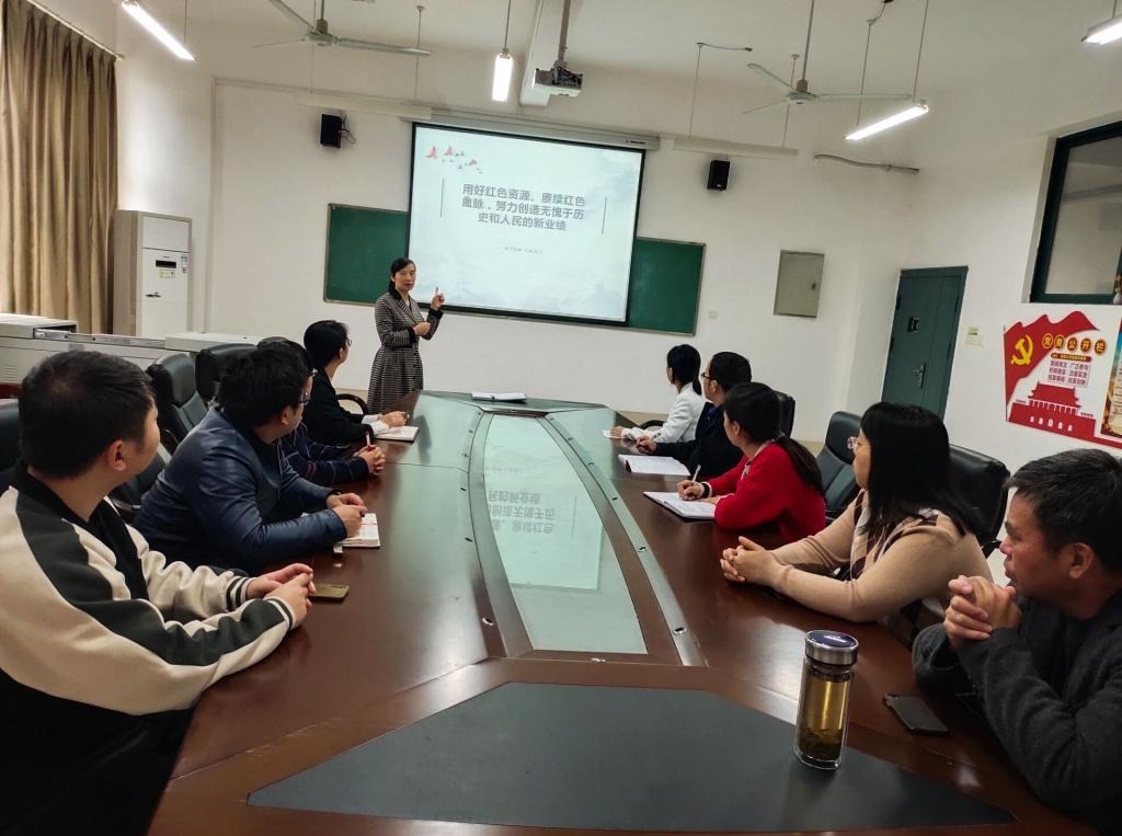 2021年10月26日,SUNBET申博小蓝校区的教师在牵头人董洁的带领下学习了习近平同志发表的署名文章《用好红色资源 赓续红色血脉 努力创造无愧于历史和人民的新业绩》《党的伟大精神永远是党和国家的宝贵精神财富》。