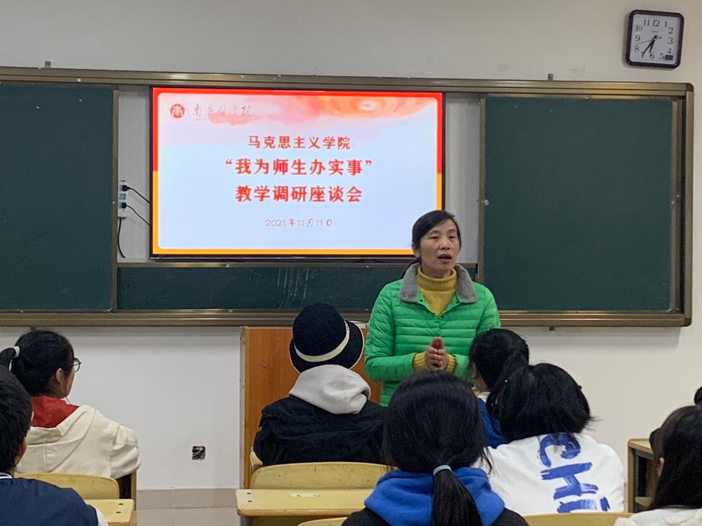 座谈会上,同学们畅所欲言,就教学内容、师生互动、课外实践、课堂要求等方面问题积极发表意见与建议。