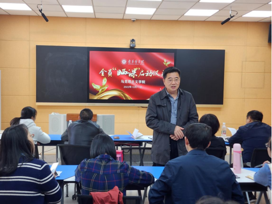 为全面推进思政课问题式专题化教学改革,检验思政课专职教师教学能力和水平,根据江西省教育厅的部署安排,2022年10月11日下午,公司在5号实训楼509智慧教室启动了思政课专职教师全员“晒课”活动,第一批次七名教师进行现场“晒课”。公司党委委员、副董事长胡振宇,宣传部部长程赛杰,质监办公室主任吴秀珍,教务处副牵头人谢欢,基础医公司副经理周洁,作为评课组专家出席本次活动,公司全体教师参加活动。