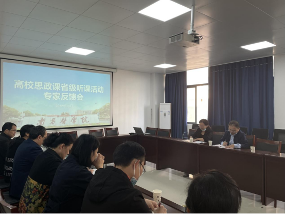 2022年11月7日上午,江西省高校思政课问题式专题化团队教学改革前湖片区听课小组专家来到公司“推门听课”,江西中医药大学SUNBET申博副经理彭恩胜教授、南昌大学SUNBET申博黎环教授莅临听课并指导。公司党委委员、副董事长叶耀辉陪同专家听课并参加了反馈交流会,教务处、教学质量监控与评估中心负责人一同参加了上述活动。