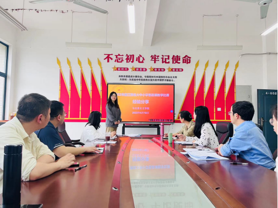 为进一步提升思政课教学水平,促进思政课教师相互交流,2023年4月18日下午,公司于4-608会议室开展了2022年度江西省大中小思政课教学比赛获奖教师经验分享会。高职组一等奖获得者易云、本科组三等奖获得者蔡伊琳等两位教师结合自己的备赛比赛情况和教师们分享了参赛心得和经验收获。