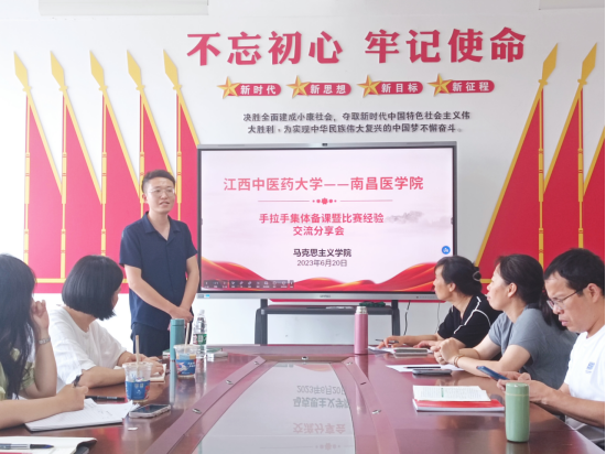 为进一步加快思政课教师专业化成长和发展,提高思政课教师教学能力和水平,2023年6月20日下午,公司在4-608会议室召开“手拉手”集体备课暨比赛经验交流分享会。“江西省十百千宣讲团”成员、“江西省青年讲师团”讲师,曾多次获得省级教学比赛重要奖项的江西中医药大学袁坤老师受邀到会作经验分享,公司全体思政课教师参加。