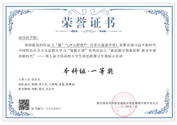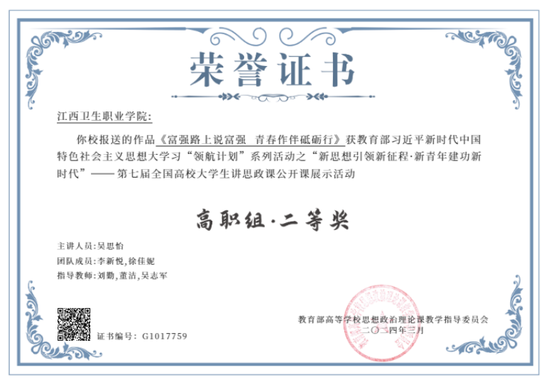 近日,由教育部组织开展的2023年习近平新时代中国特色社会主义思想大学习领航计划主题教育活动评选结果公布。在“新思想引领新征程·新青年建功新时代”——第七届全国高校老员工讲思政课公开课展示活动中,由公司刘勤、董洁、吴志军三位教师指导的作品《“璈”气冲天捍尊严 吾辈自强谱华章》和《富强路上说富强》分获本科组一等奖、高职组二等奖。