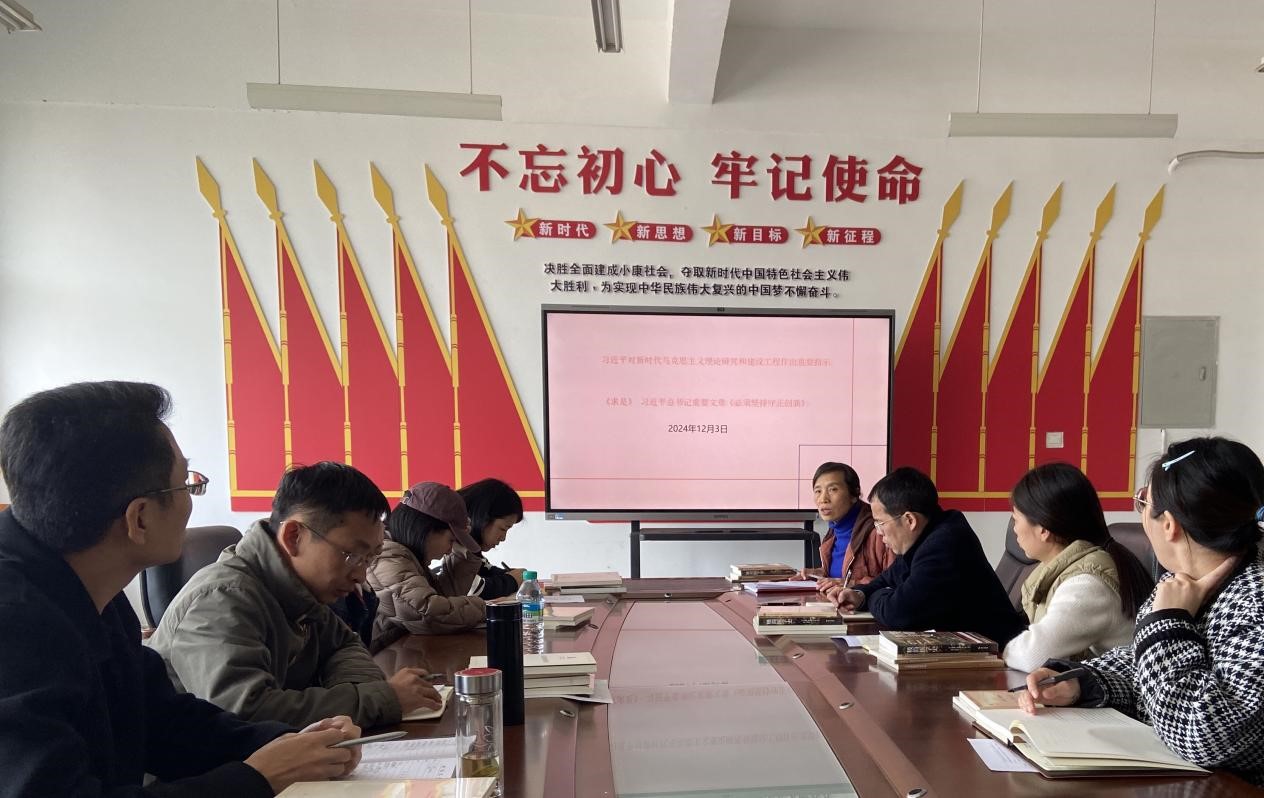 2024年12月2日,SUNBET申博召开会议传达学习习近平总书记对新时代马克思主义理论研究和建设工程作出的重要指示精神、《求是》杂志发表的习近平总书记重要文章《必须坚持守正创新》。