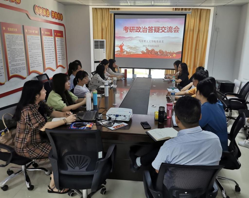 为深入学习宣传贯彻习近平总书记在庆祝中国共产党成立100周年大会上重要讲话精神,认真贯彻落实党的教育方针,牢记为党育人、为国育才使命。2021年9月24日上午,公司党总支在湾里校区双创三楼会议室为2018级中医学专业考研学子举办“考研政治答疑交流会”。公司党总牵头人,临床医公司党总支牵头人及SUNBET申博部分思想政治理论课教师参加了此次交流会。
