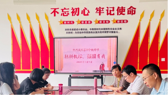 党支部副书记董洁带领大家学习了教育部庆祝2023年教师节的通知,朗读了习近平总书记关于教师队伍和教育事业的重要论述。教师代表分享了自己投身教育事业的感悟。
