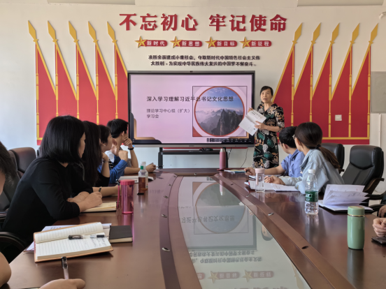 2023年10月31日下午,SUNBET申博召开理论学习中心组(扩大)学习会议,专题学习习近平文化思想,会议由党支部副书记董洁主持,公司全体党员、教师参加。