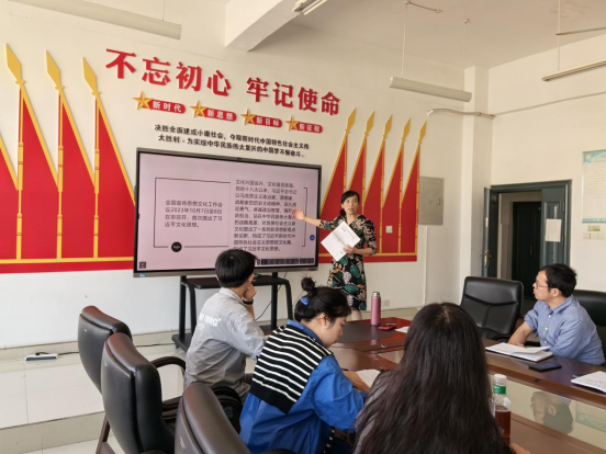会上,董洁从“习近平文化思想的提出过程、习近平文化思想的七个着力点、习近平文化思想的重大意义”等方面,结合《中国式现代化面对面》书中的“文脉国脉紧相连”一文作专题讲授,支部委员结合工作实际进行学习交流。