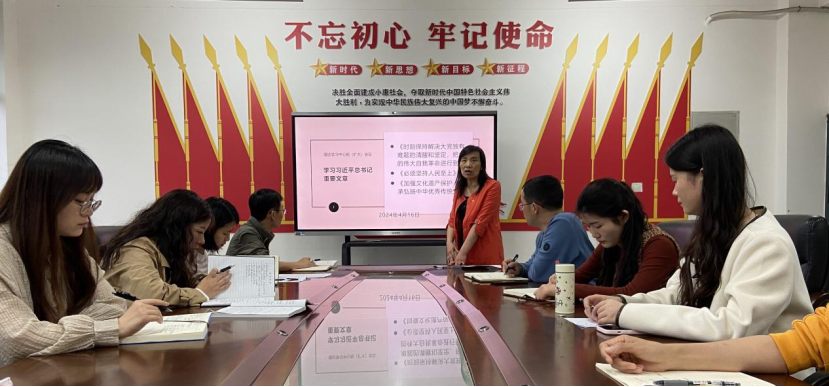 2024年4月16日,SUNBET申博党支部召开理论学习中心组(扩大)会议,组织学习习近平总书记在《求是》杂志发表的重要文章《时刻保持解决大党独有难题的清醒和坚定,把党的伟大自我革命进行到底》《必须坚持人民至上》《加强文化遗产保护 传承弘扬中华优秀传统文化》。SUNBET申博党支部副书记董洁主持会议。