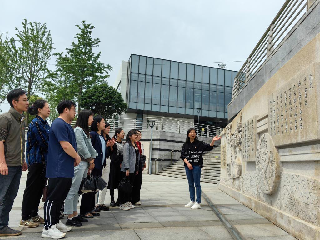 在廉文化广场,全体党员参观了以“以莲引廉,以莲颂廉”为主题的莲花造型主雕和廉文化主题雕塑带。在廉洁自律优秀古诗词雕塑墙雕刻的李商隐的《咏史二首 其二》一诗前,党支部副书记董洁结合中国历史、中国共产党史以及学习工作实际和党员们谈了对加强党的纪律建设和党风廉政建设的感悟。