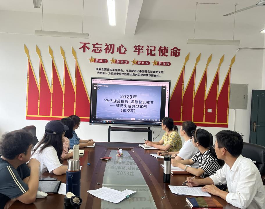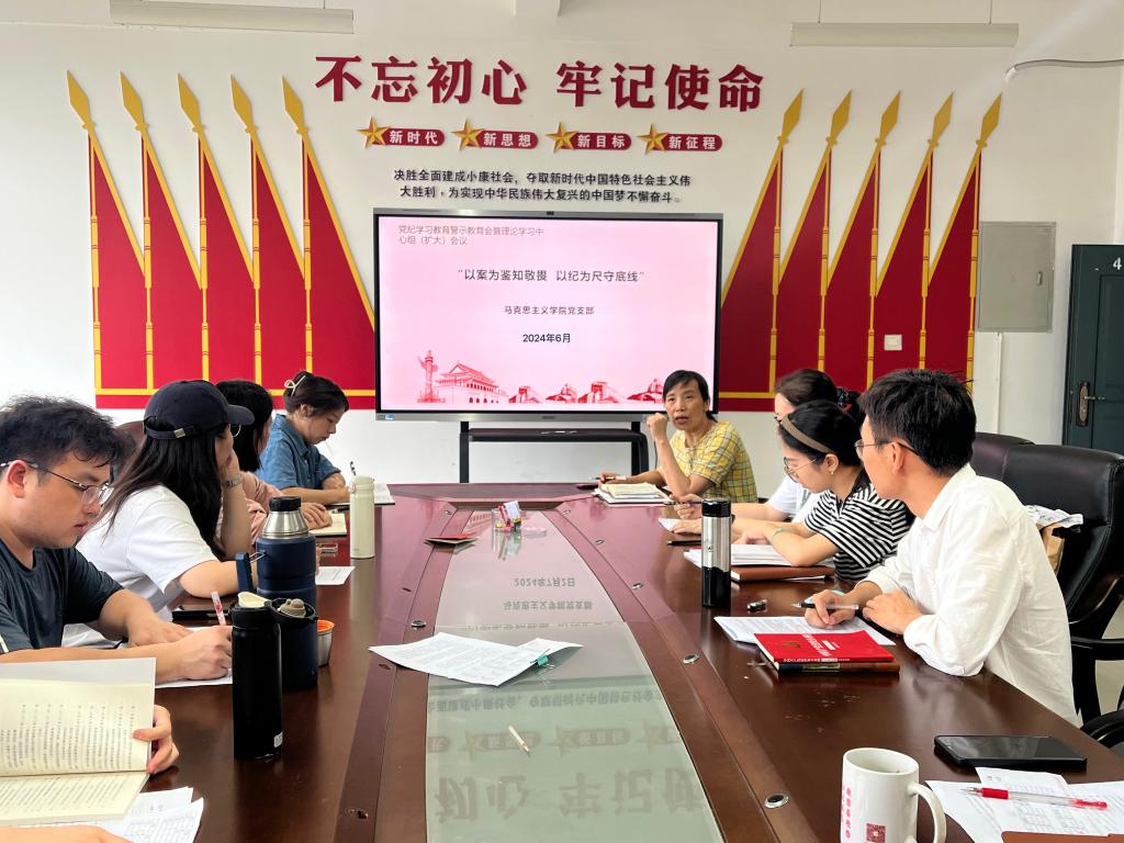 2024年6月25日,SUNBET申博党支部召开“以案为鉴知敬畏 以纪为尺守底线”党纪学习教育警示教育会暨理论学习中心组(扩大)会议,集中学习习近平总书记关于全面加强党的纪律建设的重要论述,观看警示教育片,通报师德师风违纪典型案例。党支部副书记董洁主持会议。