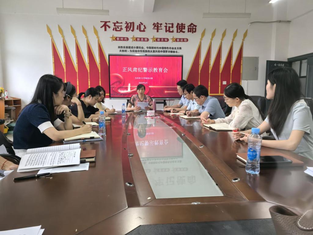 6 月 23 日,SUNBET申博党支部召开正风肃纪警示教育会。会议传达了全省、全省教育系统和公司正风肃纪警示教育会议精神,并通报了中央和省级层面违反中央八项规定及其实施细则精神的典型案例。党支部副书记董洁主持会议,全体教职工参加。